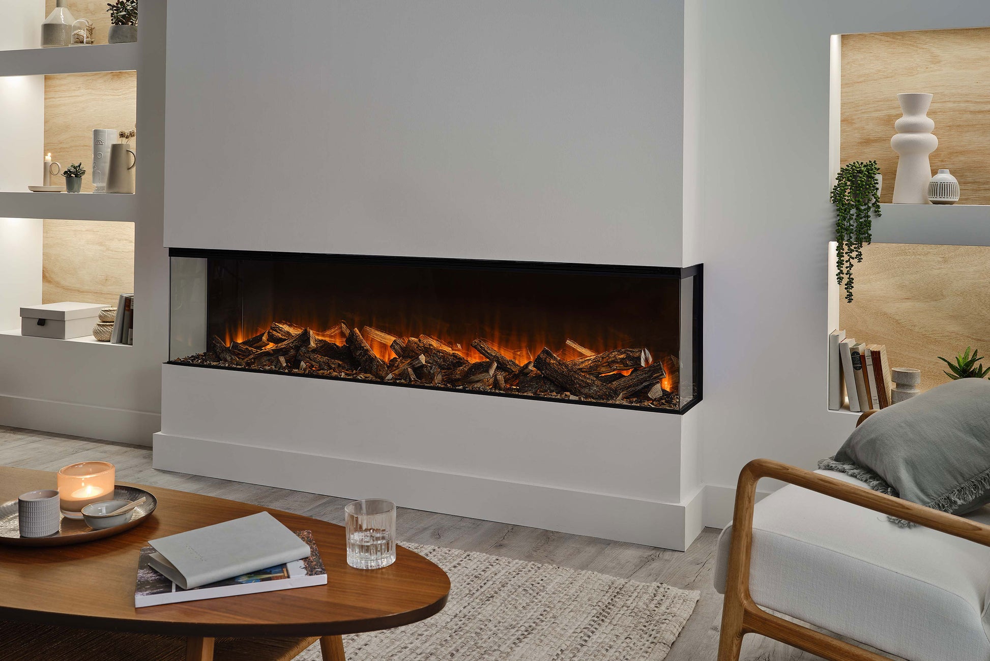 The New Forest electric fire takes flame technology to the next level. The LED flame visuals are almost unbelievable in the deep real fires colours and spread throughout the wide fire utilising every angle.
